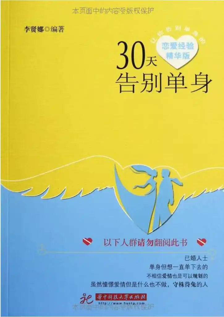 描述: 全书系统整合了网络资源、影视案例及相亲节目经验,围绕择偶定位、吸引力提升、婚恋周期判断等核心议题提出方法论,收录网络红娘的线上相亲策略与猎婚专家的择偶建议。作者基于五年互联网婚恋案例研究及个人30天脱单经历编写本书,旨在为单身群体提供可操作的婚恋指导方案