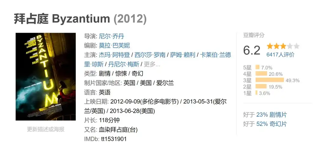描述: 昏暗的霓虹灯下,阴冷潮湿的城市里栖息着两名神秘女子:克拉拉(杰玛·阿特登 Gemma Arterton 饰)和埃莉诺(西尔莎·罗南 Saoirse Ronan 饰)。她们以姐妹相称,固守着在都市一隅的方寸空间,不愿引起他人的注意。对于血族来说,这也许是最好的办法。只是在 命运的驱赶下,“安宁”注定与她们无缘,两人辗转来到了另一座城市。四处寻找生计的克拉拉偶然结识刚刚失去母亲的中年男子诺埃尔(丹尼尔·梅斯 Daniel Mays 饰),相似的境遇让他们感同身受。诺埃尔因此为这两名美丽女子提供栖身之所。