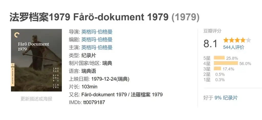 法罗档案1979 Fårö-dokument 1 2025年12月08日 16:13 夸克网盘 纪录片 描述: 《法罗文献1979》是伯格曼关于他收养的家乡法罗的第一部纪录片的十年后续作品,他在那里拍摄了许多最佳作品,并一直生活到生命的最后 📁 大小: A 链接: 夸克网盘
