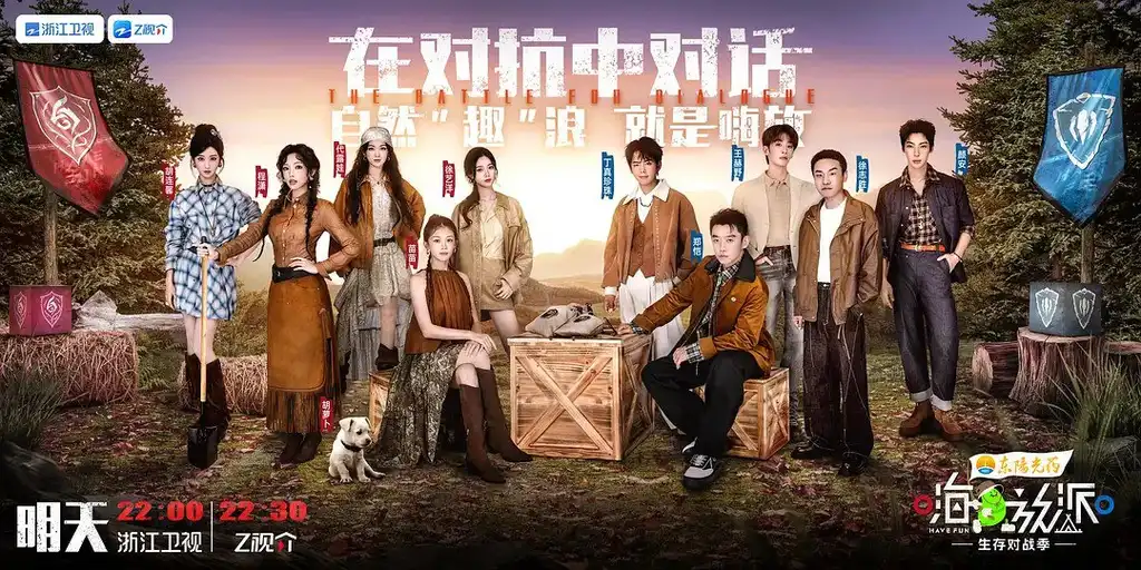 描述: 《嗨放派·生存对战季》是浙江卫视推出的一档户外真人秀综艺,由东阳光药独家冠名,嘉宾包括郑恺、徐志胜、丁真珍珠、王赫野、颜安、苗苗、程潇、徐艺洋、代露娃、胡连馨,节目于10月24日起,每周五22:30播出。本季节目主打露营体验与男女队PK竞技,让嘉宾的不同思维在山水间碰撞,众人在对话、合作与挑战中拉近关系、收获惊喜,携手嗨放。