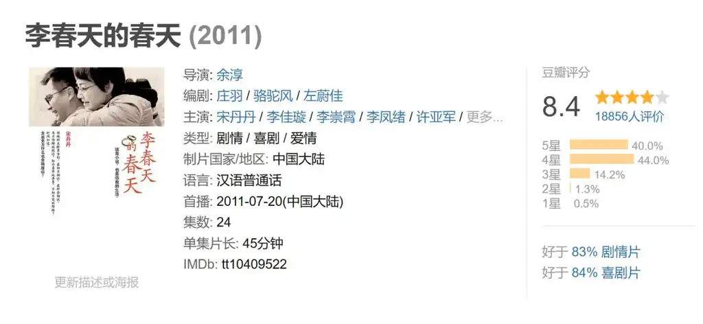 描述: 李春天(宋丹丹 饰)直到38岁依然未婚,父母朋友都担心她一直“剩”下去,让她参加过不少相亲活动,春天也考虑过身边的同事,却依旧单身。一次意外的汽车追尾,让李春天和梁冰(许亚军 饰)相遇,二人不打不相识,成了一对见面就斗个不停的冤家。由于工作的机会,梁冰和李春天的接触越来越多,从互相较劲的冤家变成了朋友。李春天的姐姐李思扬(李凤绪 饰)也在此时结束了自己国外那场失败的婚姻,回国生活,而当年苦苦追求思扬的张一男(李崇霄 饰)却即将与李春天的好姐们刘青青(李佳璇 饰)结婚。从小就受宠的思扬也注意到了条件甚好的梁冰,有意让李春天介绍,却遭到梁冰婉拒。梁冰是对李春天有所动心吗?梁冰内心藏着太多不为人知的秘密,让这段爱情愈发波折……