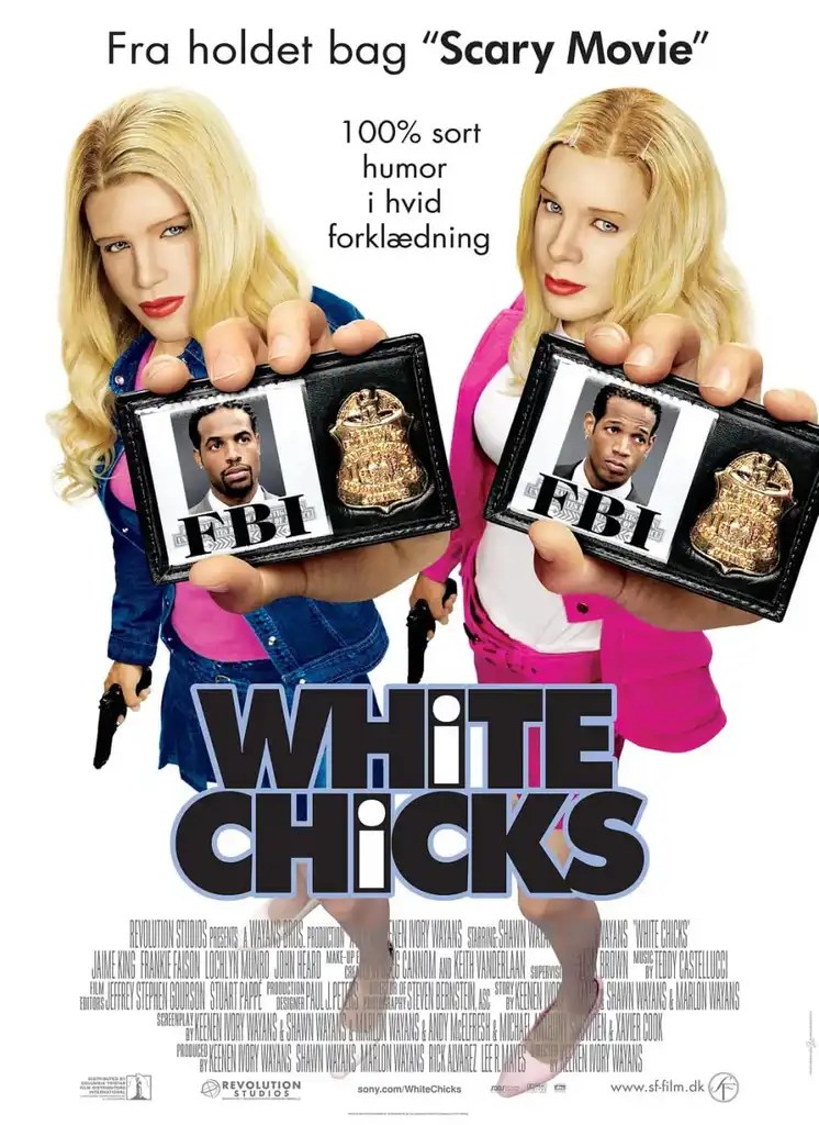 描述: 黑人警探马库斯(马龙•韦恩斯 Marlon Wayans 饰)和凯文(肖恩•韦恩斯 Shawn Wayans 饰)在一次扫毒行动中假扮小店老板,准备抓拿前来的毒贩,但是由于没人支援,这一行动搞砸了。为了挽回在上司和同事面前的面子,这两个黑人警探决定挑战一项艰巨的任务:那就是伪装成富有的白人姐妹——威尔顿姐妹,亲身引诱企图绑架这两姐妹的穷凶极恶的绑匪现身。在涂上了厚厚的白粉,浓妆艳抹后,这两个黑人小伙摇身变成了性感漂亮的白人姐妹。于是,一连串爆笑惊险的场面上演了。