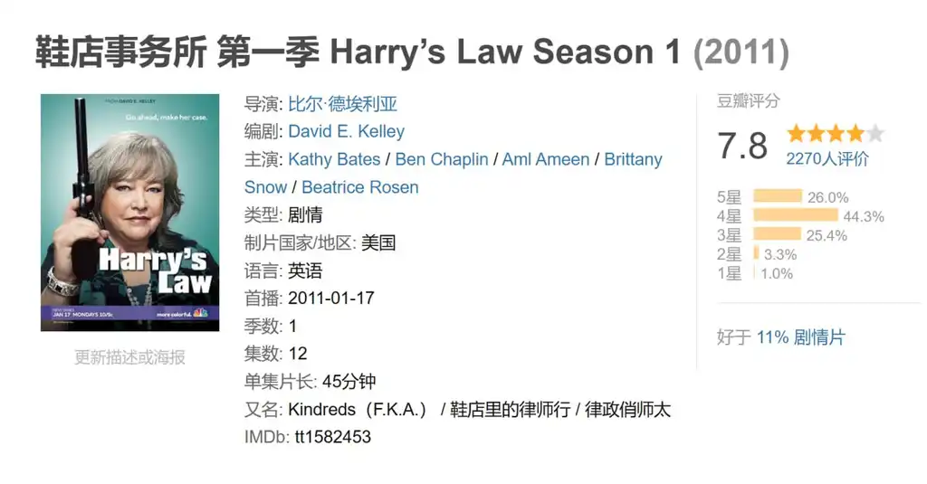 描述: 哈莉(凯西·贝茨 Kathy Bates 饰)是一位精明强干的律师,然而,因为她那大得惊人的脾气,哈莉被老板炒了鱿鱼,之后,哈莉结识了名叫马尔科姆(阿梅尔·艾米恩 Aml Ameen 饰)的青年,正面临一起指控,在哈莉的帮助下,马尔科姆洗刷了罪名,他对哈莉的辩护本事佩服的五体投地,于是提议想要为哈莉工作。