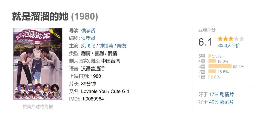 描述: 想通过一段悠闲乡间生活来结束自己少女时代的千金小姐潘文琦(凤飞飞)在乡下偶遇同样来自台北的土地测量师大利(阿B),两人经过短暂误会,互生好感。可是返回台北后,却面临门不当户不对的尴尬。