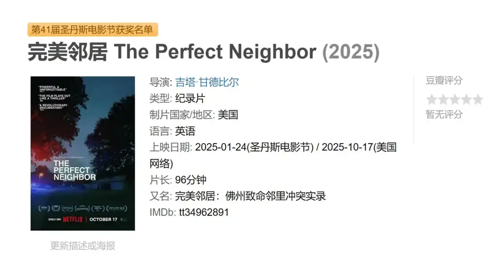 描述: 佛罗里达州一起看似微不足道的邻里纠纷升级为致命暴力。警察的执法记录仪视频和调查性采访揭示了佛罗里达“不退让法”带来的后果。在一个普通的美国家庭社区,孩子们互相玩耍,生活井然有序,然而其中一位女性却总是将任何冲突都视为需要报警处理的攻击行为。一位当地“凯伦”(Karen,指特权阶层中颐指气使的白人女性)令人讨厌的行为,逐渐被揭露为更加黑暗和令人发指的真相。导演吉塔·甘德比尔(Geeta Gandbhir)通过巧妙地呈现真实画面讲述了一个独特的美国故事,让事件本身以令人恐惧的清晰度为自己发声。然而,问题依然存在:正义能否得到伸张?还是那个本应用于保护一部分人免受另一部分人侵害的法律体系,会介入并为不可饶恕的行为开脱?《完美邻居》是对一起恐怖事件的深刻剖析,它对与那些可能住在隔壁的“怪物”共同生活的挑战有着深远的意义。