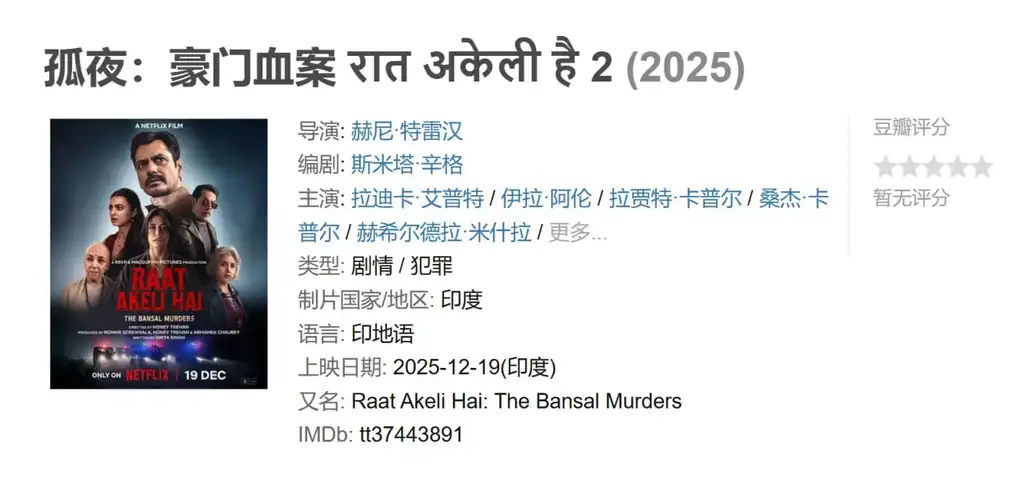 描述: Netflix宣布续集《Raat Akeli Hai:班萨尔谋杀案》,纳瓦祖丁·西迪基回归饰演警官贾蒂尔·亚达夫