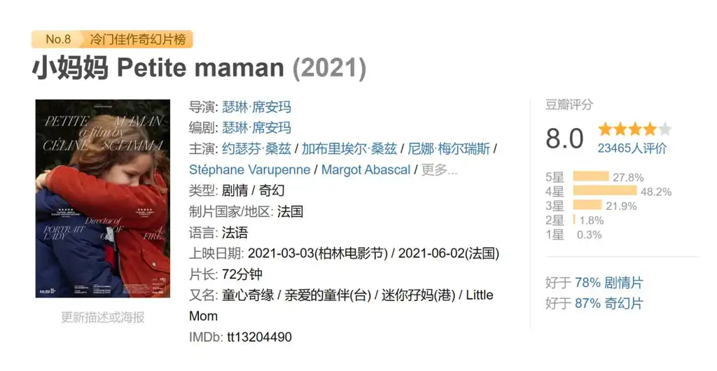 继《燃烧女子的肖像》(2019)后,瑟琳·席安玛以细腻的女性触觉,潜入小孩敏感而脆弱的内心,在如幻似真的童梦里任时空暗换,与新相识相知相遇,分享悲喜哀乐,实现每个孩子心里都曾有过的美丽童话。如何去爱那个不完美的人生。
