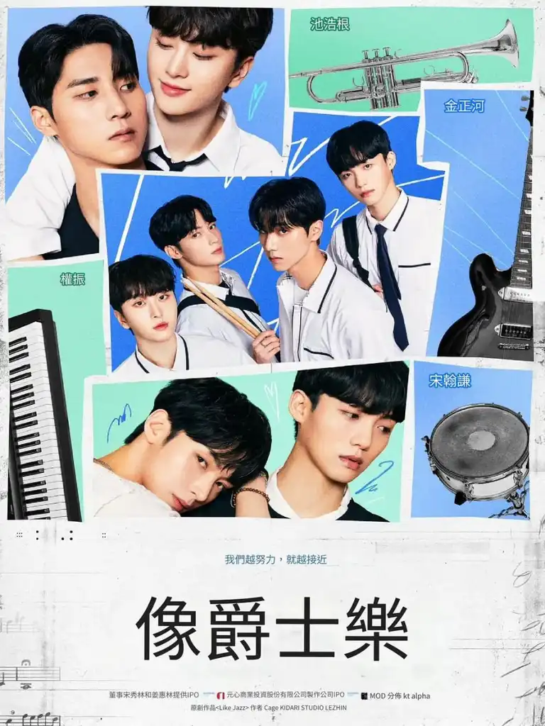 描述: 讨厌爵士的泰伊(池镐根 饰)和想自由演奏爵士的世宪(金真权 饰),因为学校课程被分到一组进行爵士合奏。就像在没有规定规则的情况下即兴演奏的爵士一样,他们想要摆脱怎样的过去?充满紧张感的爵士合奏即将拉开帷幕。