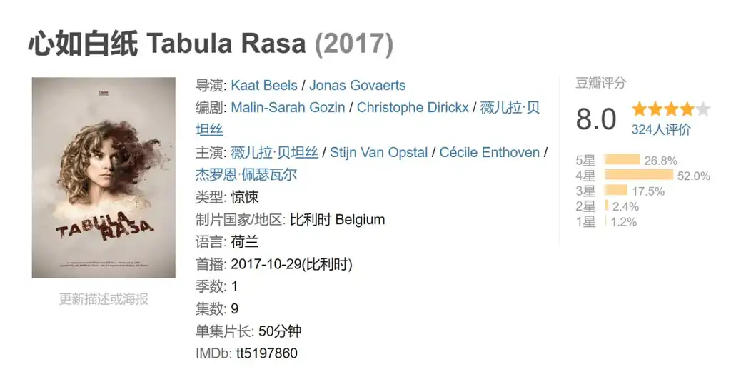 心如白纸 Tabula Rasa (2017) 2026年01月11日 13:43 夸克网盘 惊悚 心如白纸 描述: Netflix原创比利时惊悚剧集,共9集,描述一名失忆的年轻女子成了失踪人口案的关键人物,她必须恢复记忆,为自己洗刷罪名。 📁 大小: A 链接: 夸克网盘