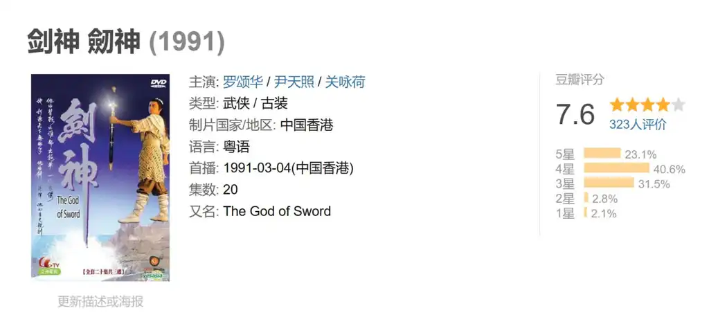 描述: 这是亚视一部优秀的武侠剧,演技派明星大联盟.当时,这些演员还不红,但是演技是不错的,而且今天都很出名了.此剧剧情新颖,也颇有内涵。两弟兄从小即受到父亲不平等的待遇,条件优越的哥哥就格外照顾弟弟,最后不得已弟弟出走流浪,遇到高人而改变一生命运。但是全剧最终的结局却令人意想不到.