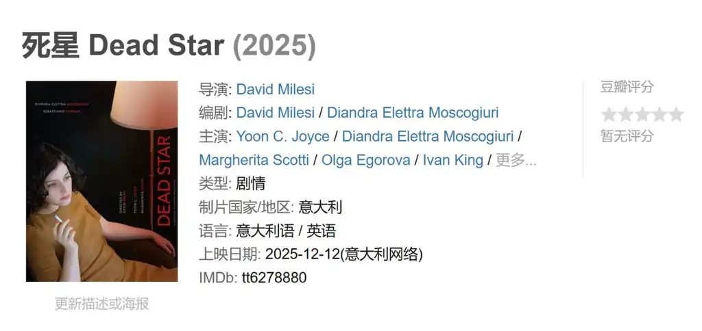描述: 克劳迪奥·纳尔维是一位多才多艺的导演,而对制片人露西亚·内芙则感到失望,他们正在寻找一位新女演员,帮助他们完成最新的故事片,而这个项目无疑还处于漂泊状态。在与最有潜力的候选人之一斯特拉的会面中,女孩会透露电影剧本与她熟悉的一个故事非常相似:她是如何去世的。