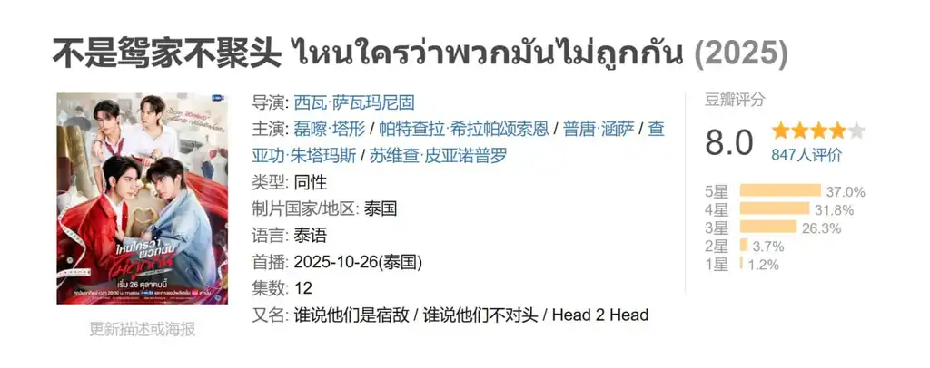 描述: 杰伊和金是长期的对手和坚持不懈的朋友。如果不互相辱骂或严厉的一瞥,他们就看不到对方。当杰伊预见到金的死亡并最终在车祸中丧生时,他在康复期间不情愿地被交给金照顾。最终,他意识到没有他的生活是多么的不可能。~~改编自网络小说《nai khrai wa jj mai thuk Kan》(ไหนใครว่าเจเจไม่ถูกกัน?)by My feline..
