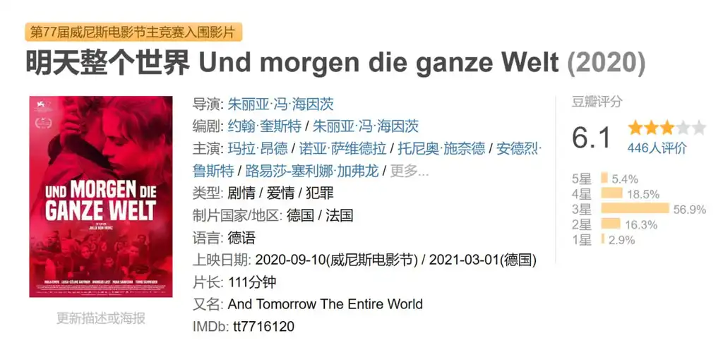 描述: 路易莎,20岁,来自优渥家庭,法律专业一年级学生。有感于德国愈发右倾的政治环境和民粹政党的崛起,她与几个朋友联合起来共同反对新右翼活动。不久后,她结识了阿尔法和莱纳,这两人认为暴力是抗争的合理手段。事情随后愈演愈烈,路易莎面临着艰难的抉择...
