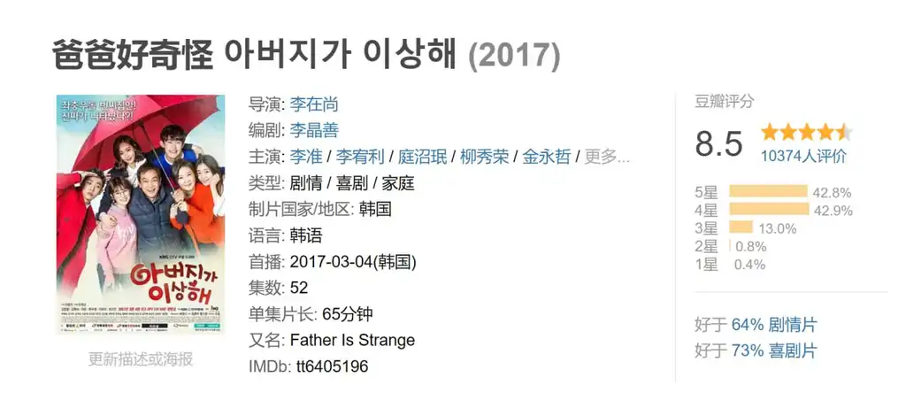 爸爸好奇怪 아버지가 이상해 (2017) 2026年02月03日 10:48 夸克网盘 剧情 喜剧 家庭 爸爸好奇怪 描述: 《爸爸好奇怪》讲述了在一生只知道工作和家庭的勤恳父亲卞汉秀和支持他的妻子罗英实以及充满个性的四兄妹的家庭中,因一名青年的突然闯入,并声称自己是这个家的儿子而发生的温暖搞笑故事。 📁 大小: A 链接: 夸克网盘