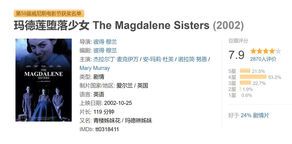 描述: 20世纪60年代,在自由开放的大环境下,古老的爱尔兰仍保持着古板和保守的风气。在这里,所有被认为堕落的女孩都要被送入玛德莲女子学院接受感化,而等待他们的不是和风细雨,而是无尽的黑暗与绝望。