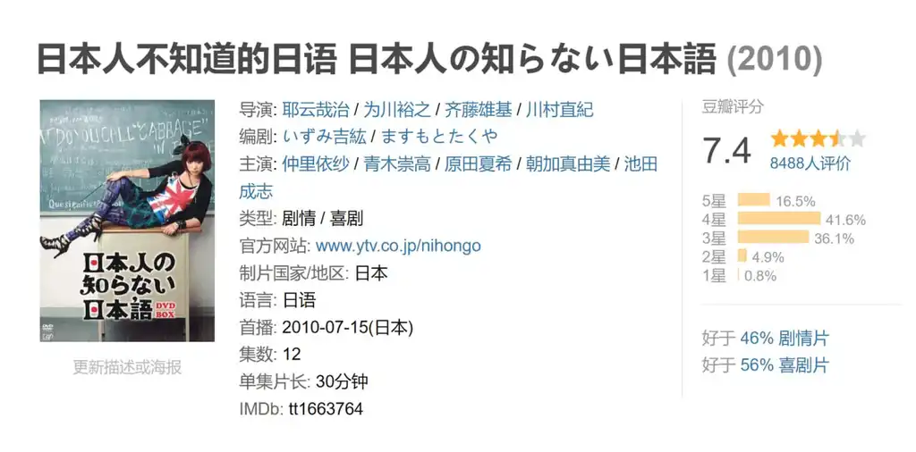 描述: 本来是餐厅店员的嘉纳春子(仲里依纱 饰),在原班主任的介绍下,进入到语言学校临时担任起了老师。她本以为,向外国人教自己母语,是件不费脑筋简单的事。但真正经历后,春子发现,原来存在着这么多连日本人也不知道的日本语问题。学校聚集着春子、涩谷太阳(青木崇高 饰)、鹿取美雪(原 田夏希 饰)等性格各异的老师;还有来自不同国家的9名学生。这9名学生出于各种原因,来到日本学习语言和文化。其中,他们提出的问题,让身为日本人的春子都大感棘手。而通过和这群学生的交流,让春子对自己的国家和文化有了全新的认识。