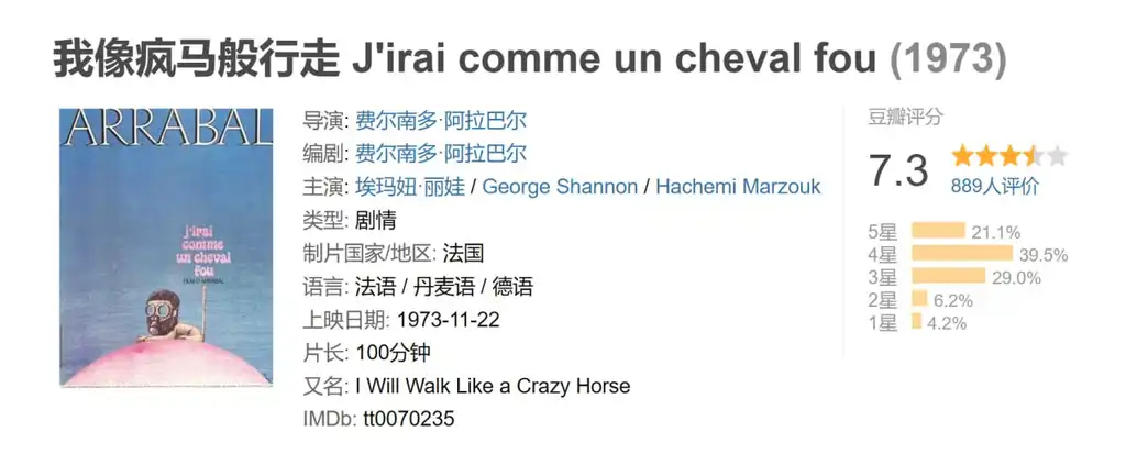 描述: 又是一部费尔南多的超现实主义的电影,比《死亡万岁》晚了三年,完成与1973年。也可能正因为这三年,导演的思想以及艺术手法更加成熟。这个电影中导演抛弃了政治上的想法,迈向了更加广阔的自然与现代,文明与原始冲突的主题,母与子之间性冲突也不单如《死亡万岁》中儿子对母亲的性 萌动。 情节依然有一条主线,一个男子杀了自己的母亲,开车来到了沙漠,遇到了一个侏儒,然后产生了感情,把侏儒带回了文明社会,一起分享他的财产,同时警察所代表的国家机器又在追捕这个男子。全片中所蕴涵的冲突有许多,最明显的是,文明与原始,自然...