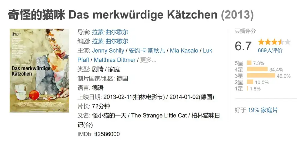 描述: 一个中产家庭大半天的家居情节,小女儿一听到厨具电器发动就会尖声大叫,母亲全程出奇安宁,她邀邻居过来修理洗衣机,小儿全程观察,她的逆光背影和冷傲骨架你总会留意到。卓加是绝对要留意的新名字,自言这是一部没有任何恐怖的恐怖片;他以平静而不平实,平凡但不平坦的冷暖并存眼界展现这一天。或许状况明天才出现,今天猫和狗和小孩都安好;或许从定镜中你相认出高达布烈逊汉尼卡,然而坚持不批判就是批判,要观众保持寻常眼光凝望生活细节流动,推敲底下的女性心思,则是法斯宾达遇见桑黛儿艾格曼。