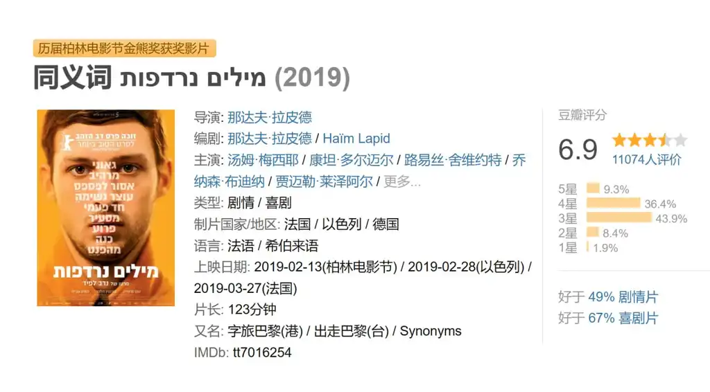 描述: 约亚夫(汤姆·梅西尔 Tom Mercier 饰)是一名以色列退伍军人,他非常向往法国浪漫而又开放的风气,于是只身一人来到了巴黎,结果却惨遭打劫,身上的财物被洗劫一空,就在这个紧要关头,一对艺术家情侣卡洛琳(昆汀·多尔马尔 Quentin Dolmaire 饰)和艾米勒(露易丝·谢维洛特 Louise Chevillotte 饰)向约亚夫伸出了援手,令他免于流落街头的厄运。