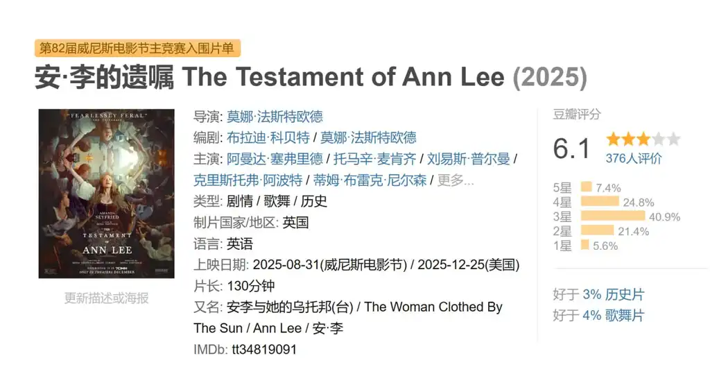 安·李的遗嘱 The Testament of 2026年03月10日 19:12 夸克网盘 剧情 歌舞 历史 安·李的遗嘱 描述: 这部电影设定在18世纪的英格兰,并“灵感来源”于真实事件,是一部关于宗教领袖安·李(Ann Lee)的“史诗寓言”,安·李是谢克教运动的创始人,且被她的追随者宣称为“女性基督”。 📁 大小: A 链接: 夸克网盘