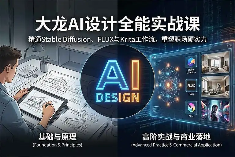 描述: 适用于职场新人、设计师及企业管理者,大龙AI设计职场硬实力大提升,围绕“快速提升设计思维、项目执行与团队协作能力”,系统覆盖AI工具使用、案例拆解、实战项目流程、品牌视觉策划、数据驱动设计、跨部门沟通技巧等关键环节。