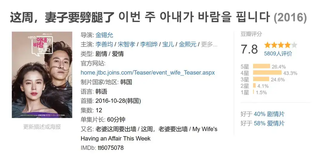 这周,妻子要劈腿了 이번 주 아내가 바람을 핍