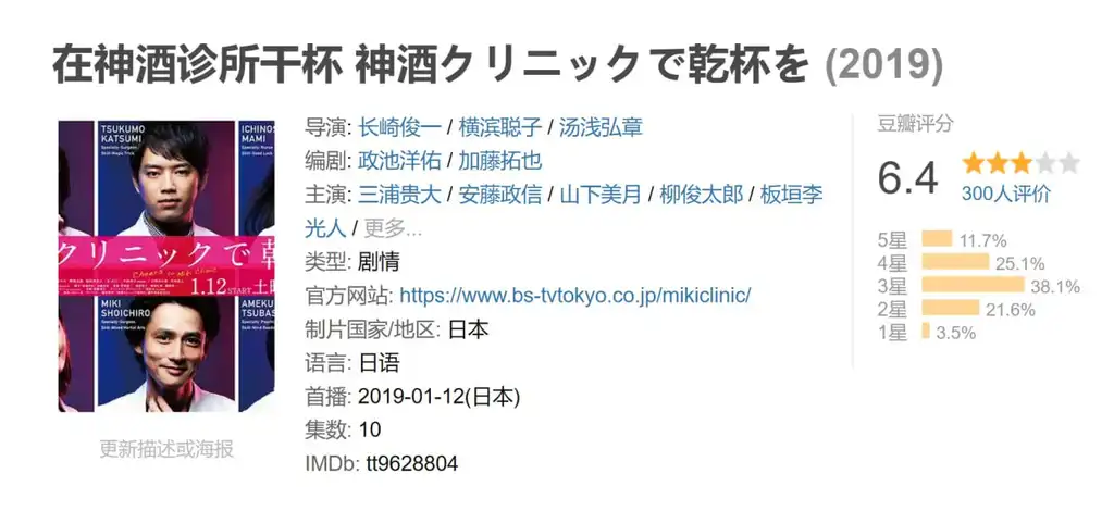 描述: 外科醫生九十九勝己(三浦貴大)因醫療事故被逐出醫院,走投無路下,透過恩師的介紹來到神酒診所。位於高級住宅區的神酒診所,二樓以上是設備精良的醫療環境,由院長神酒章一郎(安藤政信)率領。醫術精湛的密醫,為需要隱藏病情的大人物們治療。面試那天,勝己目睹章一郎高超的執刀技巧大受震撼,決定要在神酒診所為拯救人命盡最大努力。但事實上,神酒診所暗地裡還提供其他服務,勝己不得不捲進事件當中,也發現自己的醫療事故另有隱情……