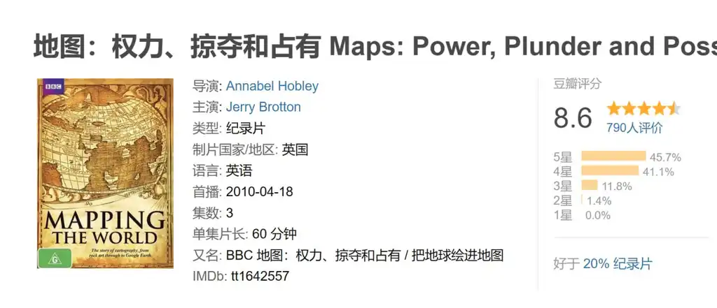 描述: 回顾绘制地图的最初时期,探究是什么让人们在没有发明文字之前就开始绘制地图的,以及地图如何发展变迁。但不勾勒出世界,还对世界施加影响和权利。我们将发现科学的进步,如何使这一目标得以实现。还将探索现代风格的地图,我们认为它理所应当是客观的、真实的,其实并非如此……