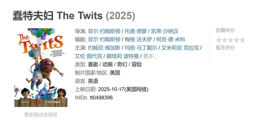 描述: 改编自罗尔德·达尔的同名儿童小说,蠢特夫妇是世界上最卑鄙、恶臭、下流的人,他们恰巧经营着世上最恶心、危险、愚蠢的游乐园Twitlandia。当他们在生活的城镇崛起掌权时,两个勇敢的孤儿和一群神奇的动物挺身而出,被迫变得像蠢特夫妇一样狡猾,以拯救这座城市。