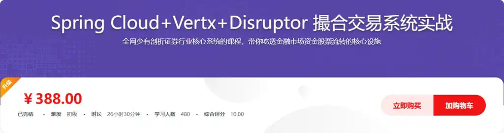 SpringCloud+Vertx+Disrup 2025年10月19日 12:24 夸克网盘 学习 知识 课程 资源 撮合交易系统实战 描述: 全网少有剖析证券行业核心系统的课程,带你吃透金融市场资金股票流转的核心设施 📁 大小: NG 链接: 夸克网盘